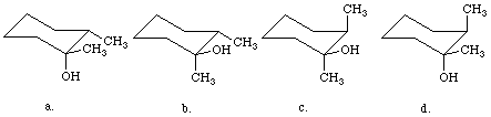 Exercise 2 Select the most stable conformation of the product of syn addition of the elements of water to 1,2-dimethylcylcohexene.