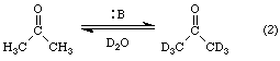 When acetone is treated with base in D2O, it is slowly converted into hexadeuteroacetone as shown in Equation 2.