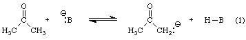 Now consider the acid-base reaction of acetone shown in Equation 1.
