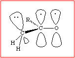 Experiments have shown that the pKa of acetone is 20. It is 1030 times more acidic than methane! This means that the conjugate base of acetone is 1030 times more stable than the conjugate base of methane. Why? What structural feature is there in the conjugate base of acetone that affords such stabilization? Clearly the answer must be the carbonyl group. As the proton is being removed from the carbon, the geometry about the carbon begins to change. As the negative charge increases, the geometry around the a-carbon changes in order to maximize the overlap between the orbital containing the lone pair of electrons and the pi orbitals of the carbonyl group.