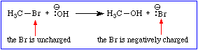 Like nucleophiles, leaving groups may be neutral or negatively charged. As Scheme 2 shows, the central atom of a leaving group that is negatively charged will be neutral while it is bonded to the substrate.
