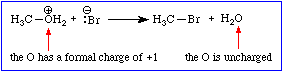 Exercise 3 Suggest a reason why the bromide ion doesn't bond directly to the positively charged oxygen atom in Scheme 3.