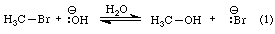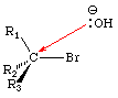 Specifically, the fact that the transformation is first order in both alkyl halide and hydroxide ion implies that both reactants are involved in the rate determining step of the reaction. This knowledge allowed us to postulate a structure for the transition state of the reaction. Now we are going to see what insights changing the substituents attached to the reaction center can offer. Scheme 1 reiterates the general description of nucleophilic aliphatic substitution reactions.