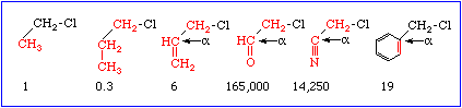 Exercise 10 Complete the following statement: In an Sn2 reaction, when a substituent attached to the reaction center contains a pi bond, the rate of substitution in comparison to a reference compound in which the corresponding substituent does no contain a pi bond.