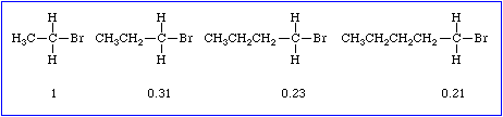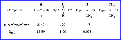 Figure 2 presents the relative rates of substitution in a series of primaryl alkyl bromides. Here the number of substituents attached to the reaction center is not changing, but their size is.
