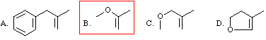 26. If the product mixture were treated with aqueous acid, which compound would react the fastest? Enter the letter that corresponds to the structure you select. C Compounds C and D should both be more reative than E because protonation of C and D produces a tertiary carbocation, while protonation of E generates a secondary cation. Protonation of C and D generates the same intermediate. Since D is more stable than C, the energy difference between D and the transition state leading to the intermediate must be greater than the energy difference leading from C to the transition state. Hence, C reacts fastest.