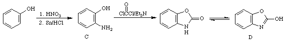 13. and 14. C= Nc1ccccc1O: D = O=c1[nH]c2ccccc2o1 or Oc1nc2ccccc2o1.