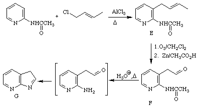 16-18. E = CC=CCc1cccnc1NC(=O)C, F = CC(=O)Nc1ncccc1CC=O, G = CC(=O)Nc1ncccc1CC=O.