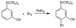 3.CN(C)c1ccc(Br)c(C#N)c1 The dimethylamino group activates the positions ortho