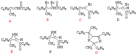 6) CC(=C(BR)C(=O)C1CCCCC1)C2CCCCC2 This is analogous to Eq. 3 in the topic Heterocyclic I.